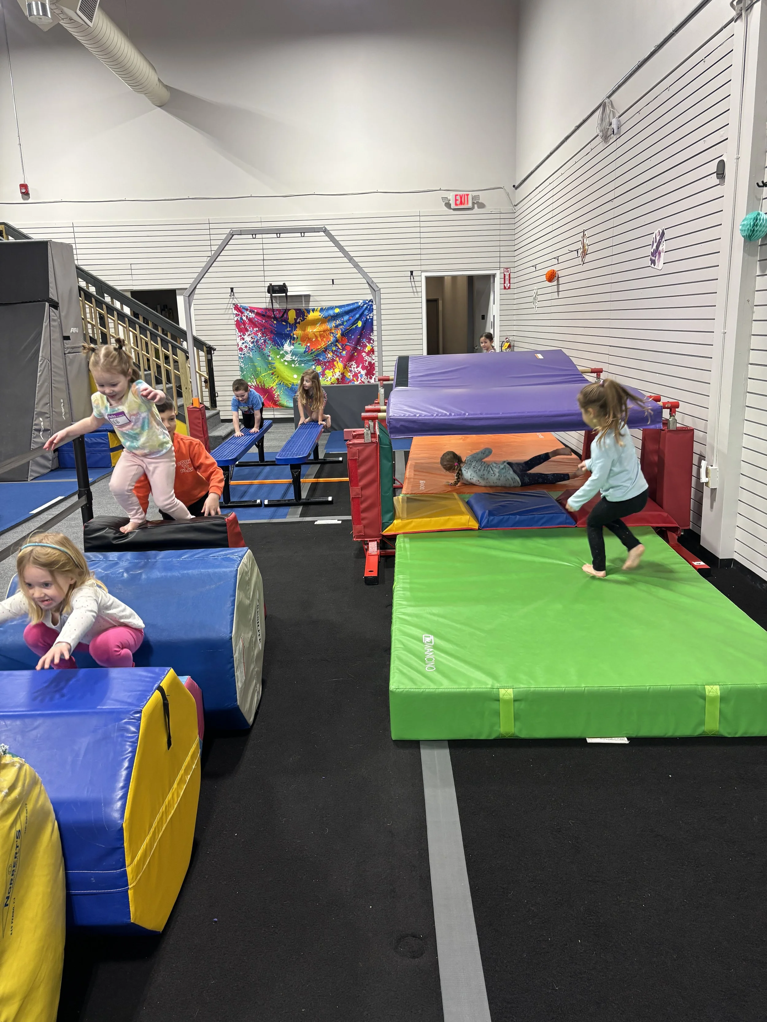 The Facility! Our facility includes lots of safe and clean equipment. There are many mats, obstacles, and apparatuses used throughout our space!