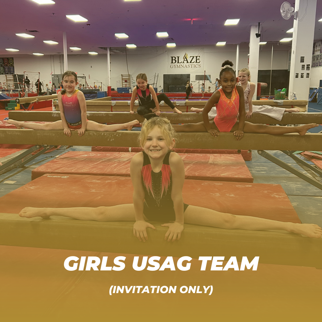 The Developmental Program at Blaze is broken down into levels (2-10) and offers some of the strongest, most challenging competition at each level. Athletes competing at levels 2-5 compete compulsory routines. Each child competes the same exact routines on each apparatus and uses the same floor routine music. Athletes competing at level 6 and above compete Optional routines. Each gymnast competes their own unique routine on each apparatus and can choose their own floor routine music, though there are still requirements regarding what types of elements and skills must be included at each level.